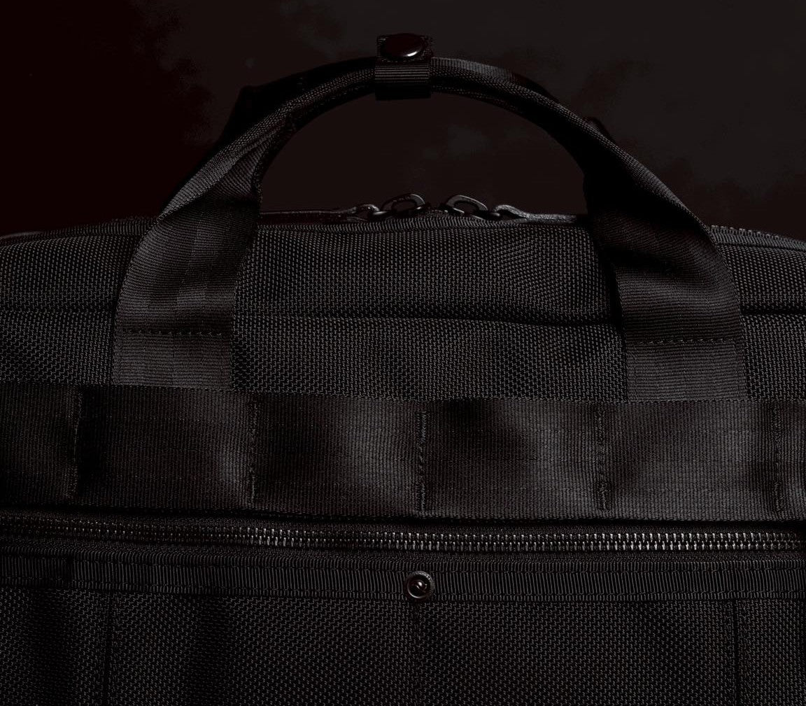 Military-inspired elements are incorporated throughout, and the adoption of the PALS (Pouch Attachment Ladder System), which involves sewing nylon tape at regular intervals, allows for the attachment of pouches and accessories. Additionally, D-rings and double rings are attached to the body of the bag, allowing you to coordinate your accessories, such as carabiners or wallet chains.