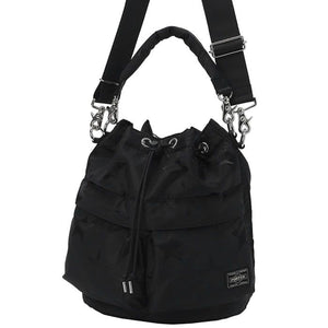 The 2WAY tool bag is pouch bag that can be opened and closed using a drawcord, and the main storage can be accessed through the side zipper. Comes with a removable handle for carrying and a shoulder strap for carrying.