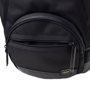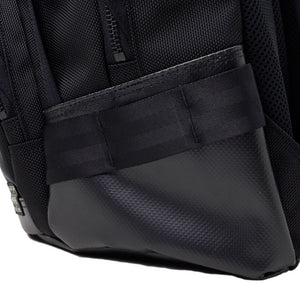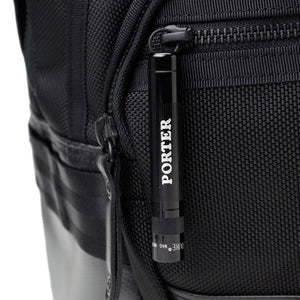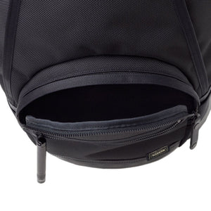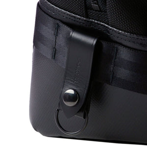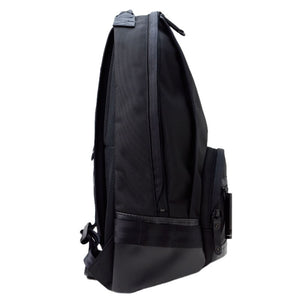 The main material is varistor nylon made in Japan woven with 66 nylon thread, which is also used for car airbags and bulletproof vests, and has excellent heat resistance, abrasion resistance, and tear strength. Some parts are made of highly water-resistant tarpaulin fabric, which is used as an industrial material. Although it is a one-tone black color, it has a stylish design with contrast by combining fabrics with different textures.