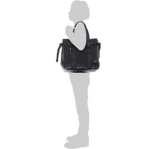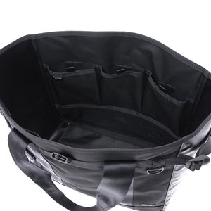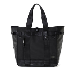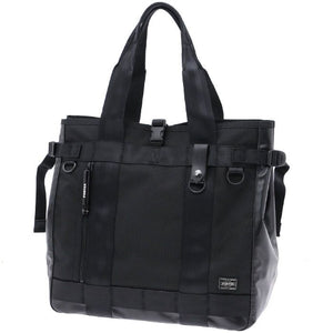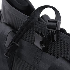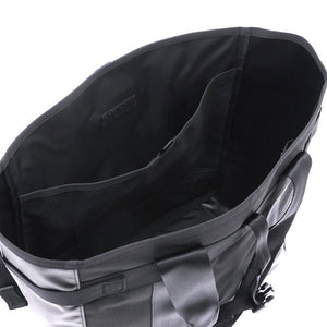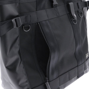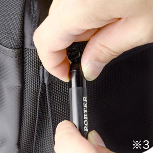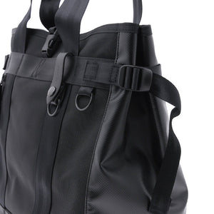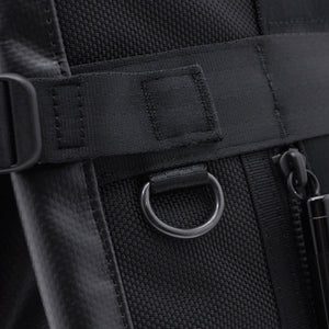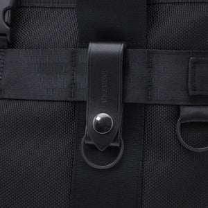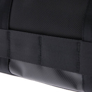 The main material is varistor nylon made in Japan woven with 66 nylon thread, which is also used for car airbags and bulletproof vests, and has excellent heat resistance, abrasion resistance, and tear strength. Some parts are made of highly water-resistant tarpaulin fabric, which is used as an industrial material. Although it is a one-tone black color, it has a stylish design with contrast by combining fabrics with different textures.