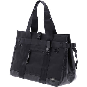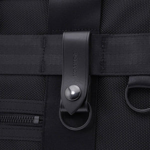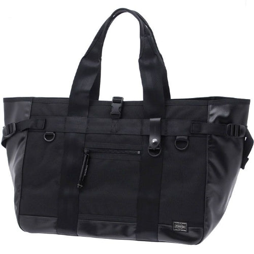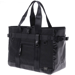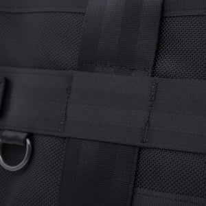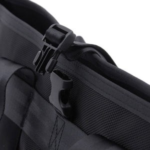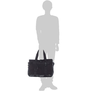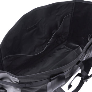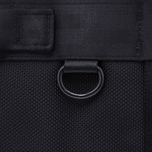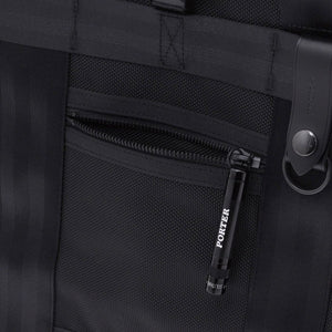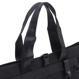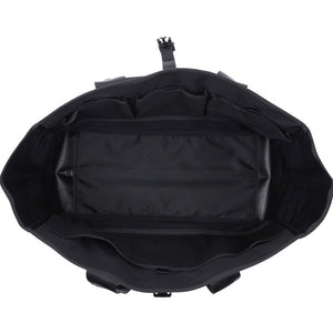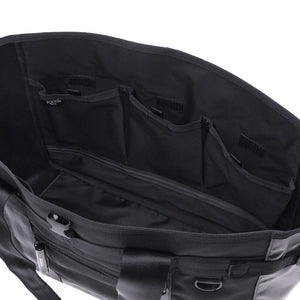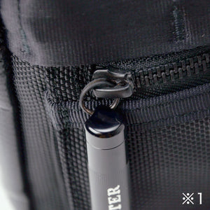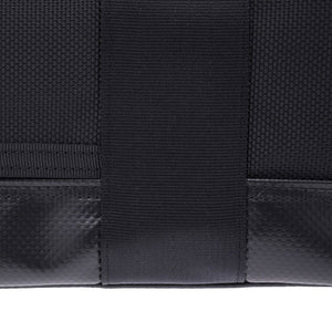 The main material is varistor nylon made in Japan woven with 66 nylon thread, which is also used for car airbags and bulletproof vests, and has excellent heat resistance, abrasion resistance, and tear strength. Some parts are made of highly water-resistant tarpaulin fabric, which is used as an industrial material. Although it is a one-tone black color, it has a stylish design with contrast by combining fabrics with different textures.