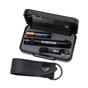All models except the pouch, wallet, and pen case come with a detachable key chain made of natural leather and a Maglite with the PORTER logo engraved on it. (*The Maglite comes with a warranty, key chain, batteries, and attention card, all packed in a special case.)