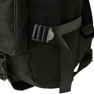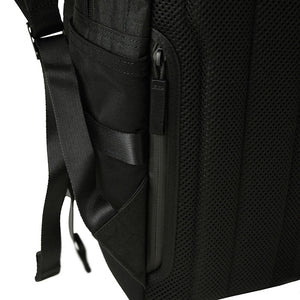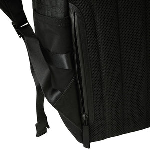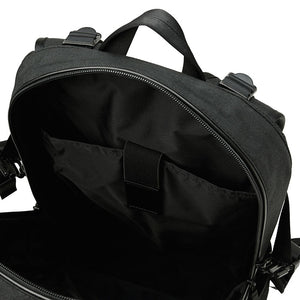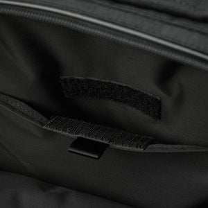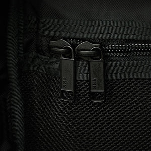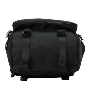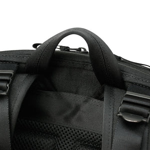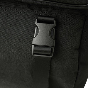 The back of 1000 denier cordura nylon, which has excellent strength and lightness, is twisted with polyester called X-PLY and arranged in a bias direction (diagonal to the fabric) to create a woven fabric. Suppressed stretching in the diagonal direction, which is a weak point of In addition, by laminating (crimping) a very thin PET film made of polyester material using a patented manufacturing method, it is possible to seal the weave of the fabric and prevent the intrusion of water such as rain and sweat. It is a material that is both durable and waterproof. For the gusset, we used the X-C1000's X-PLY fabric to make the shape of the bag look beautiful.
