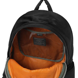 The daypack is a two-layer type with plenty of storage space, divided into a main layer with a large storage capacity and a back layer with cushioning material that can hold A4 size documents and 13 inch PCs. The side has a gimmick with a military bag radio pocket motif, and when you open the flap, there is a vinyl pocket where you can store smartphones and wireless earphones, and a mesh pocket that is convenient for storing folding umbrellas and plastic bottles. The other side has a zipper pocket that is ideal for storing small items such as key cases. The daypack with plenty of storage space is an item that can be used in any scene, from casual to business.