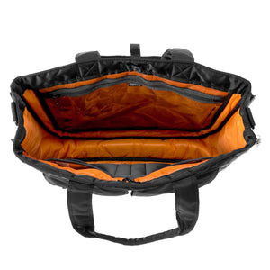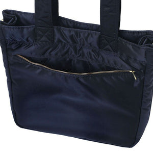 A 2-way tote bag that comes with a shoulder strap and can be carried by hand or on the shoulder. The handle is long enough to be worn over the shoulder even when wearing a jacket or outerwear. In addition, the gusset width can be expanded by opening and closing the zipper according to the amount of luggage, making it a convenient tote bag for both casual and business occasions.