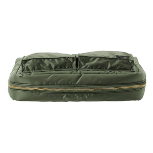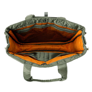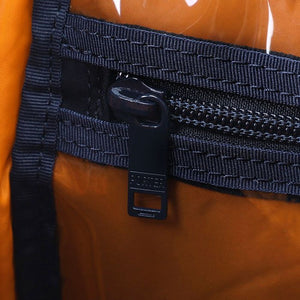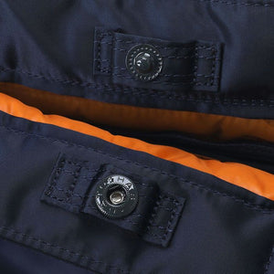 It uses an original 3-layer structure fabric developed with the motif of the US Air Force flight jacket "MA-1". The 3-layer fabric of nylon twill (surface) + polyester cotton (middle layer) + nylon taffeta (back) is very light, and the soft feel of the bonding material and the vivid rescue orange on the back are attractive. This series is full of the thorough attention of Yoshida&Co. craftsmen in all processes from cutting to sewing and parts.
