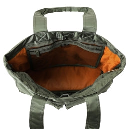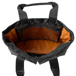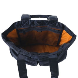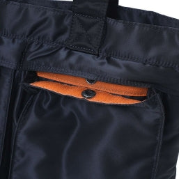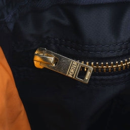 It uses an original 3-layer structure fabric developed with the motif of the US Air Force flight jacket "MA-1". The 3-layer fabric of nylon twill (surface) + polyester cotton (middle layer) + nylon taffeta (back) is very light, and the soft feel of the bonding material and the vivid rescue orange on the back are attractive. This series is full of the thorough attention of Yoshida&Co. craftsmen in all processes from cutting to sewing and parts.
