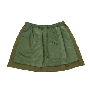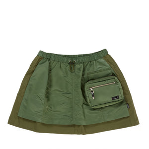 The nylon skirt, a unique collaboration piece, combines nylon and polyester cotton. It features a zippered pocket on the front, showcasing PORTER's signature design. The blouson and miniskirt can also be worn as a set.
