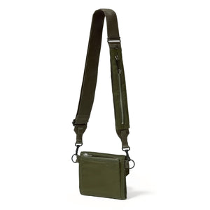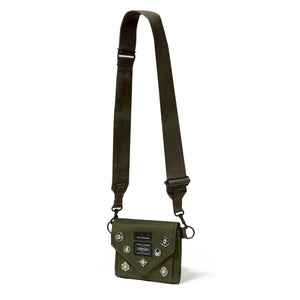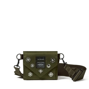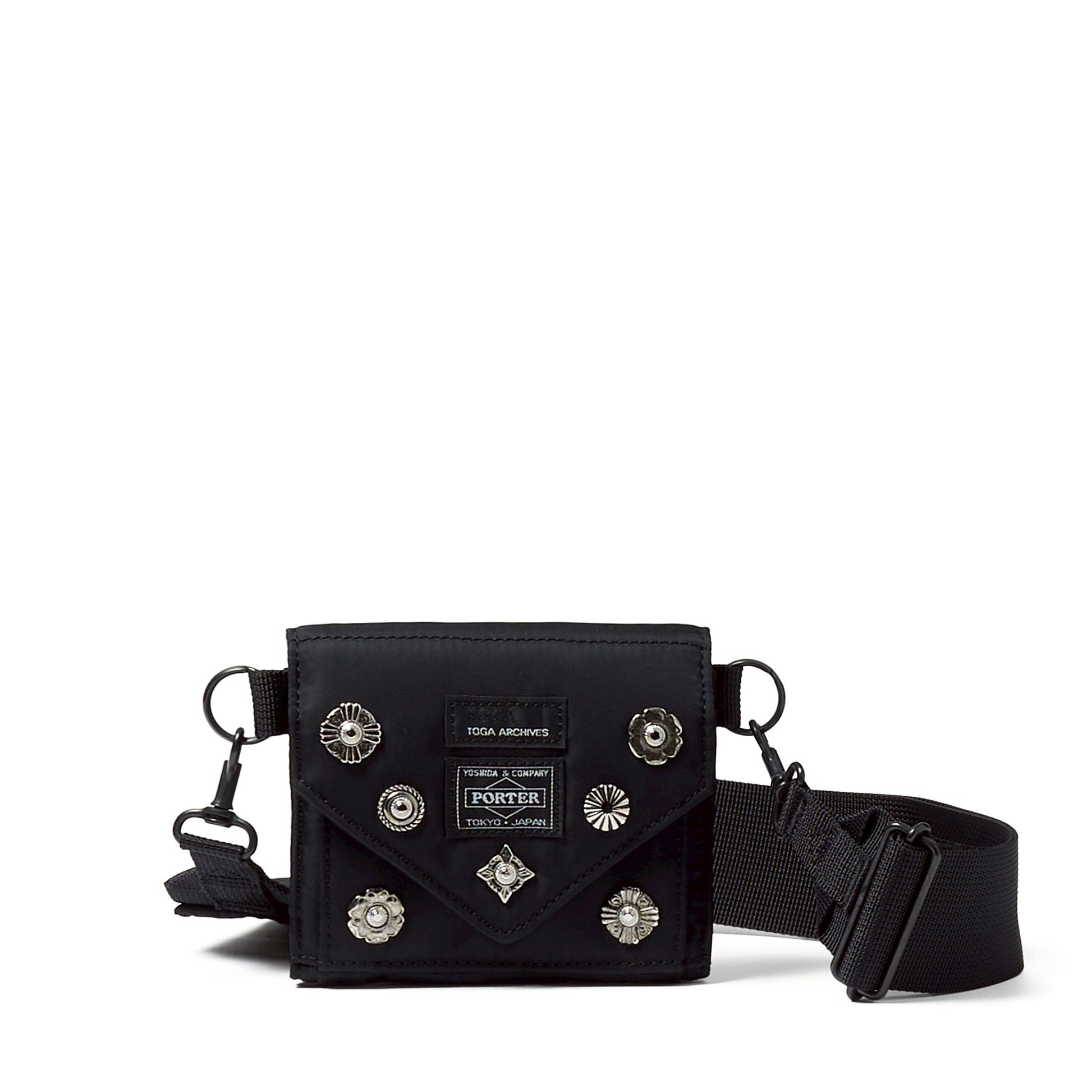 The shoulder wallet is adorned with TOGA's signature metal conchos. The zipper pocket on the shoulder strap has a gusset that expands when you put something inside, allowing you to store a smartphone or other items. The wallet can also be used on its own by removing the strap.