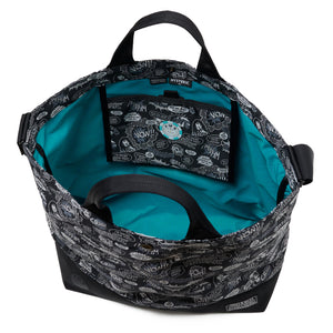 This collection features an original fabric delicately woven with a design created by HYSTERIC GLAMOUR specifically for this collaboration with POTR. This special collection features a monochromatic all-over print and POTR's signature vibrant turquoise blue interior. The main material