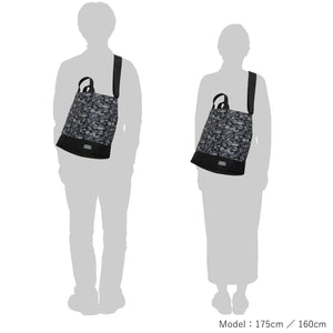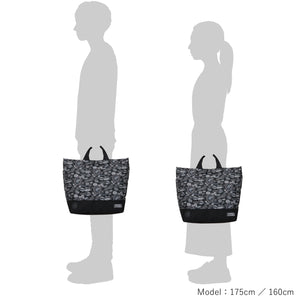 The tote bag features a wide opening with a central hook, making it easy to access your belongings. Its size allows it to hold B4 documents, making it ideal for both daily use and short trips. It