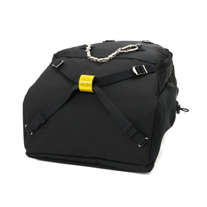 The main material is nylon twill, with PVC coating for enhanced water resistance. The bottom gusset, which is prone to stress, is made of Cordura ballistic nylon for increased durability. Sling binders are also located on the front and bottom of the bag, allowing for easy attachment and transport of personal items.