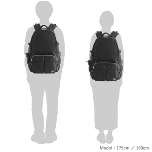 The Daypack (XL) features an iconic front pocket and a large capacity of 21L, making it an item suitable for a wide range of situations, from everyday use to travel. The back has a pocket for a 16-inch PC or tablet, which can be stored separately from the main compartment. The exterior has multiple pockets, and the side pockets can hold a 500ml plastic bottle or a folding umbrella.