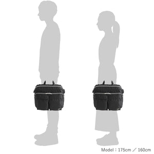 The Sling Bag with Handle Double Zip (XL) is a highly spacious item with two main compartments. The interior is equipped with a variety of pockets suitable for organizing and storing your belongings. There is also a pocket on the back, which is convenient for taking out and putting in your smartphone and other personal belongings.
